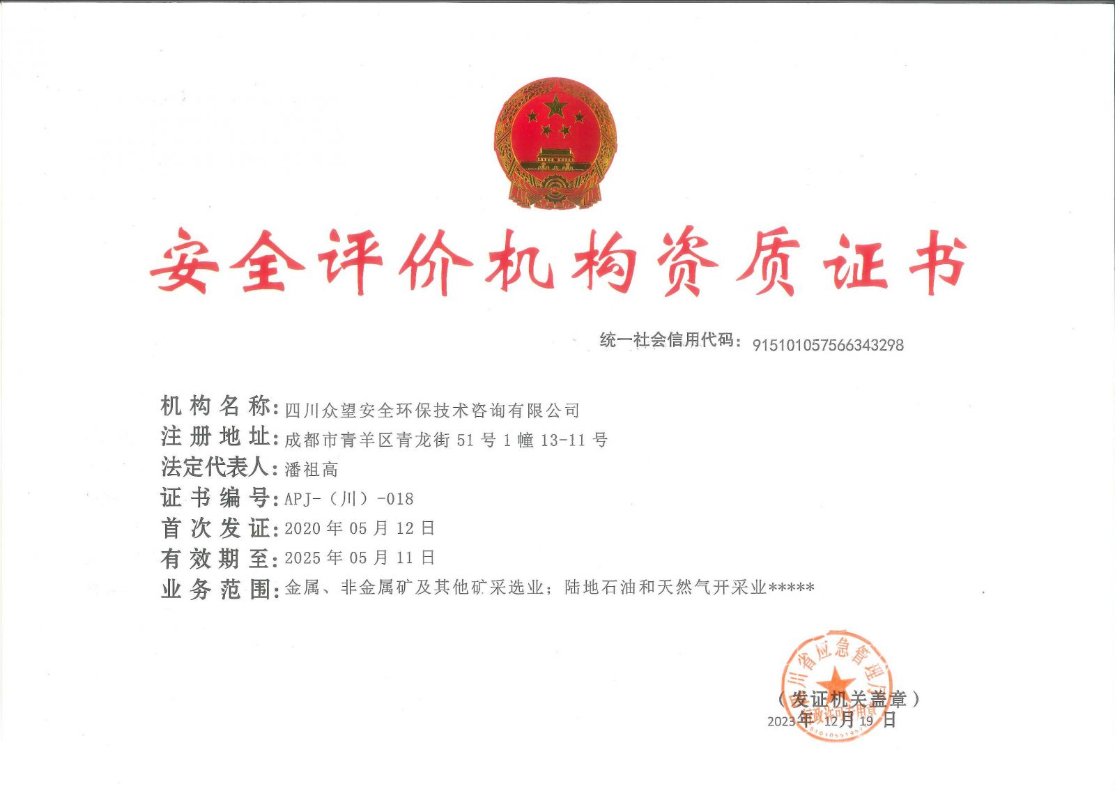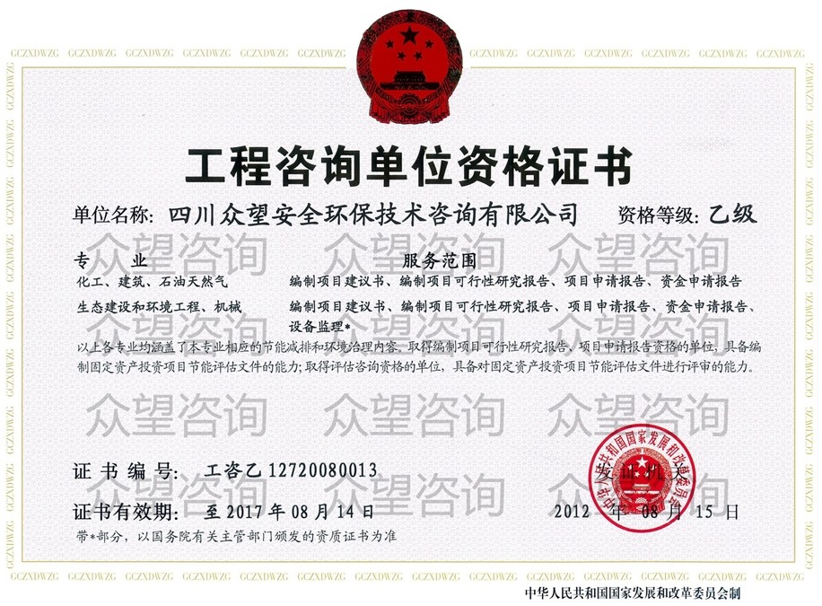 • 眾望咨詢 四川眾望安全環(huán)保技術咨詢有限公司 ...<詳情>